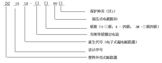 配电保护用过电流脱扣器代号为1; 电动机保护用过电流脱扣器代号为2。