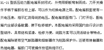 XL-21型低压动力配电箱适用于发电厂及工矿企业中,在交流电压500V及以下的三相五线系统作动力配电之用。TXL-21型低压动力配电箱系户内装置靠墙安装,屛前检修。外壳用钢板弯制而成,刀开关操作手柄箱前右柱上部,可以作为切换电源之用。可根据用户需要,选用不同型号,不同电流等级的断路器,满足不同用户的需要。