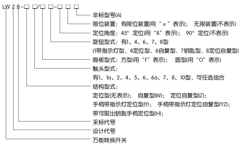 | LW2-YZ | 带定位及自动复归有倌号灯(有保持接点) |