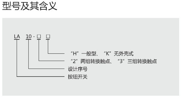 LA10按钮开关适用于交流50Hz,电压至380V及直流电压至220V的电路中,作为控制,连锁等用途。