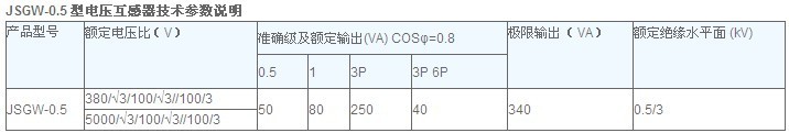 JSGW-0.5 JSGW-0.5F型电压互感器为改进型小体积三相柱带有开口三角接线的辅助二次线圈干式电压互感器,适用于户内50HZ.3KV、6KV、10KV交流电路中做电压、电能测量以及继电保护用