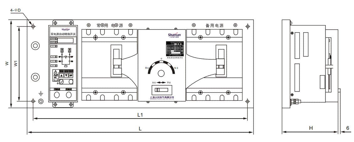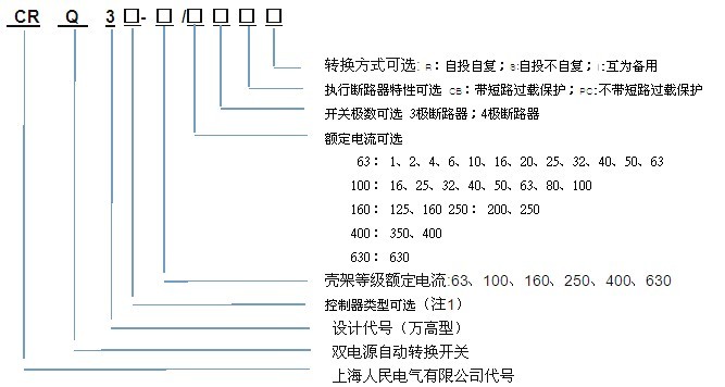 注:控制器类型可选 A型:其功能包括:手动-自动转换、失压与断相转换、转换延时设置。