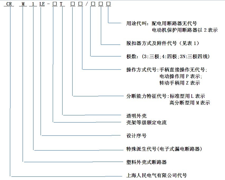 CRM1LE系列透明外壳漏电断路器((剩余动作电流断路器、以下简称漏电断路器)是本公司综合采用国际先进技术设计、开发的新型断路器之一。具有明显可见分断点的隔离功能。适用于交流50/60Hz,额定工作电压至400V,额定工作电流从16A至630A的配电网络电路中作为漏电保护之用,也可防止因设备绝缘损坏,产生接地故障电流而引起的火灾危险。并可用来分配电能和保护线路及电源设备免受过载、短路等故障的损坏,亦可作为电动机的不频繁起动及过载、短路保护。该漏电断路器具有体积小(和相对应的塑壳断路器体积相等)、分断高、飞弧短及剩余动作电流可调节等特点,同时可带报警触头、分励脱扣器、辅助触头等附件,是用户使用的理由产品。